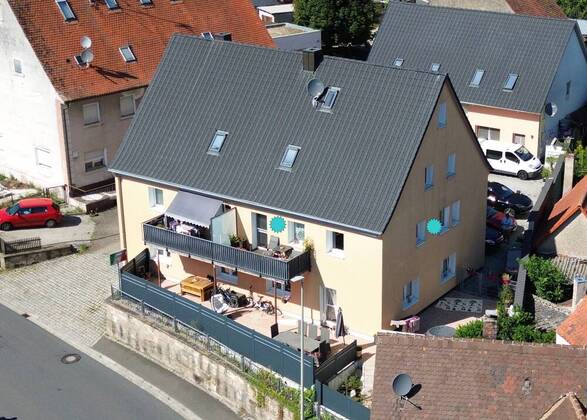 Die Drei-Zimmer-Wohnung befindet sich im 1. Obergeschoss eines Vierfamilienhauses in zentraler Lage von Münchaurach Gemeinde Aurachtal.